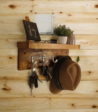 BAXTER Wooden Wall Shelf Organiser with Key Holders