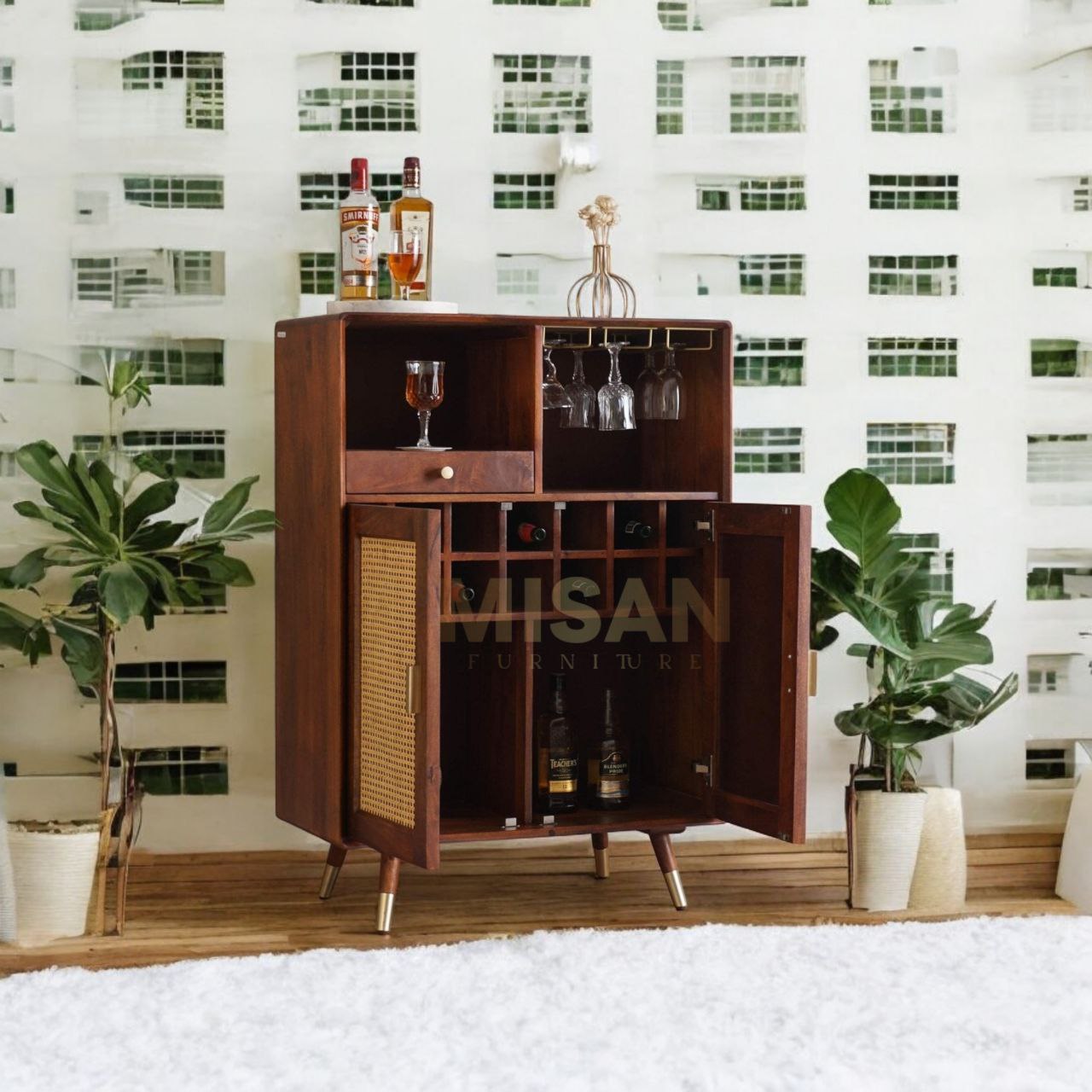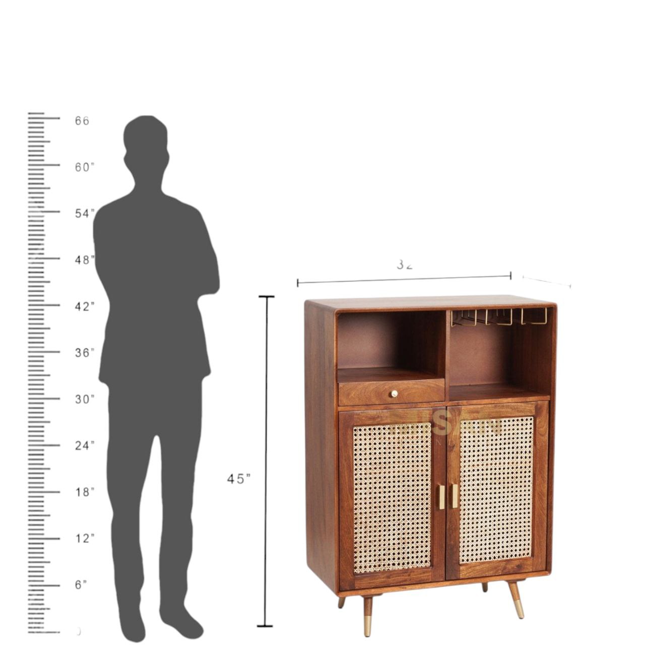 Each Bar Cabinet, Storage Unit, or Boston Rattan Bar Cabinet is crafted with premium materials, such as seasoned wood and elegant Rattan details, to ensure durability and style. All wood products undergo a thorough 3-step treatment process to protect against termites, borers, and pests. The wood is carefully seasoned to maintain optimal moisture content, minimizing risks of seasonal expansion or contraction. Additionally, every product goes through a rigorous 3-stage quality check process, ensuring over 50 quality aspects are inspected to deliver a superior, long-lasting furniture piece.