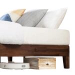 A great, simple platform bed. The natural wood color and feel is plus. It was super easy to assemble (even with 1 person!) as it came with a nice ratcheting allen wrench and clear instructions. No major problems 6 months in, other than needing to give the screws some tightening recently.