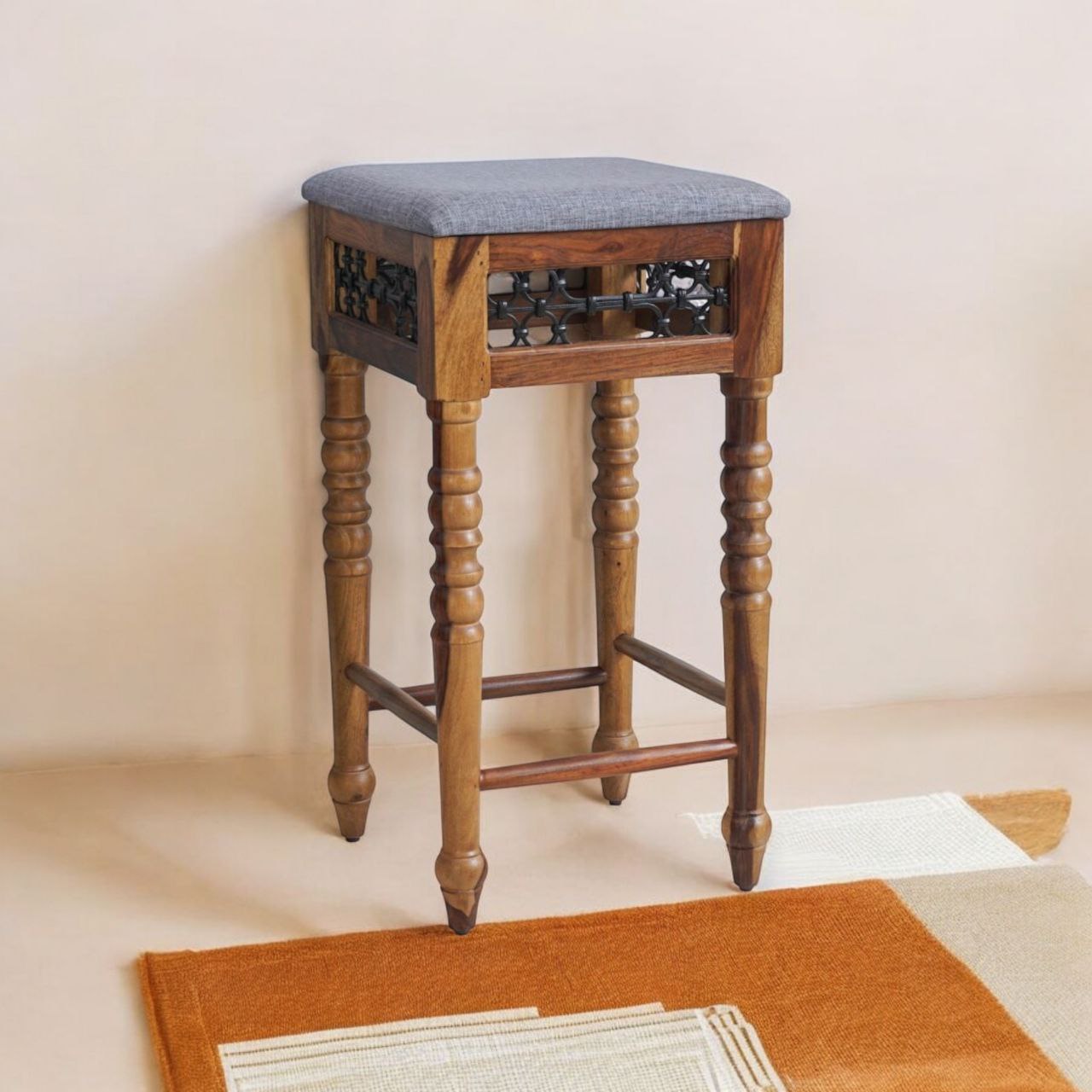 Our Bar Stools and related furniture go through a rigorous 3-step treatment to protect against termites, borers, and pests. The wood is carefully seasoned to maintain the perfect moisture content, reducing seasonal swelling or contraction.